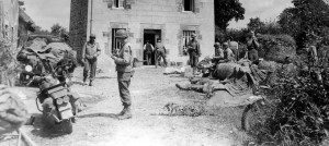 A WLA de la police militaire dans la «Rue du Chateau ‘à Cherbourg à l’été 1944.